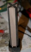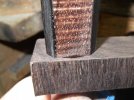 Lets say they are tearing down the old homestead built by your ancestor in 1806 ( or your favorite bar, a shipwreck,... any piece of historic or sentimental wood). Get a plank of wood from the demolition and have it stabilized( and possibly dyed). Make this handle with the sentimental wood as the panels. It will become family heirlooms if you make matching turkey carvers, with the 1800's cabin wood as the handle panels, for Christmas gifts to the relatives. The harder ebony frame will make the handle wear well, and the stabilization will make the old wood last, as well as shine.