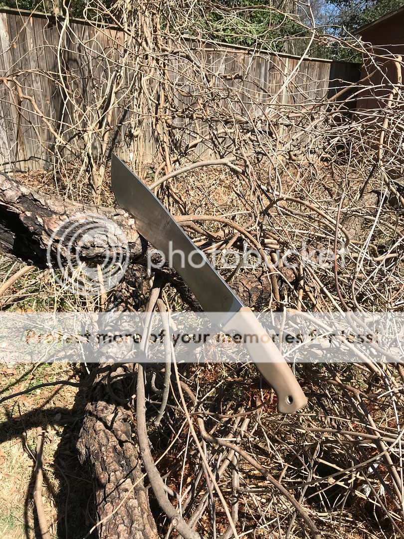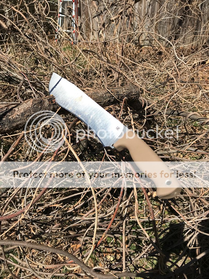 I got to spend the next couple hours using my BB13 and 1311 chopping through vine and log. It was a bit of a PITA getting through all of the vines, but it was a fun process nonetheless, and my son (with his plastic rambo knife) and dog pitched in to help. It was a great day!