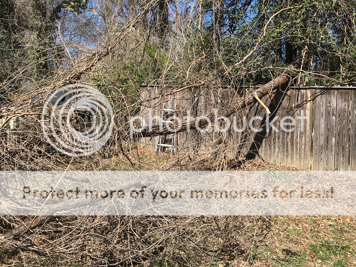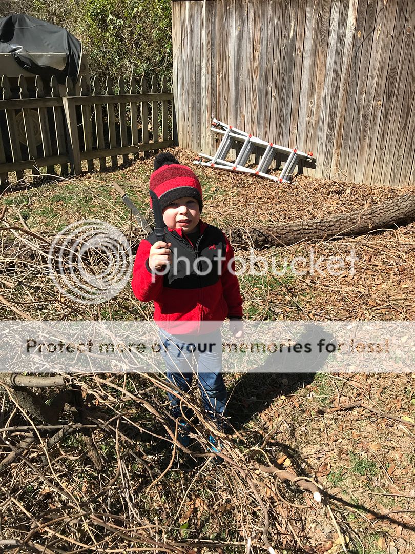 There has been a dead tree covered in vines hanging over the fence in my yard for a while now, so since it was a nice day I decided it was time to take care of it. I really didn't want to damage my fence in the process, but I also really didn't want to pay someone to remove it for me, so I ended up doing it myself (with some help from my son and dog). Fortunately, it went exactly as I planned it, and I got a lot of use with my Res-C handled knives in the process.