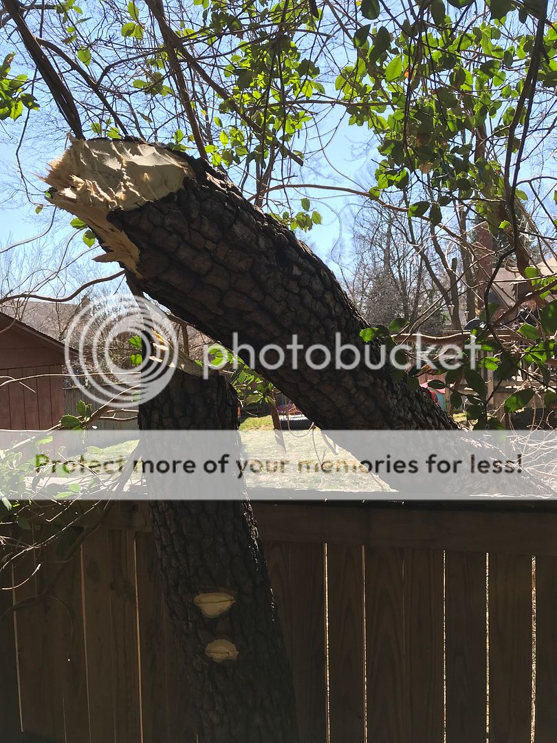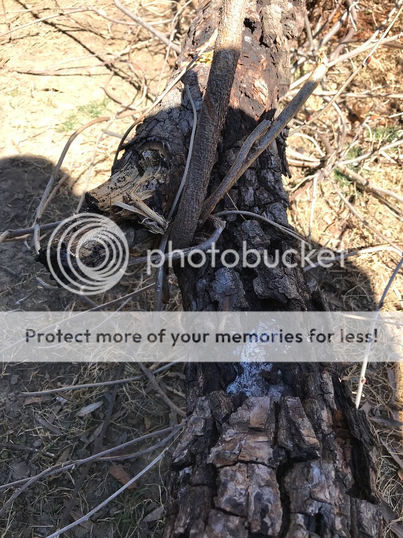 The top of the tree was black, and as odd as it is to say, it almost looked like melted wood. There were several spots along the trunk that were very charred, so my best guess is that it was hit by lightening.