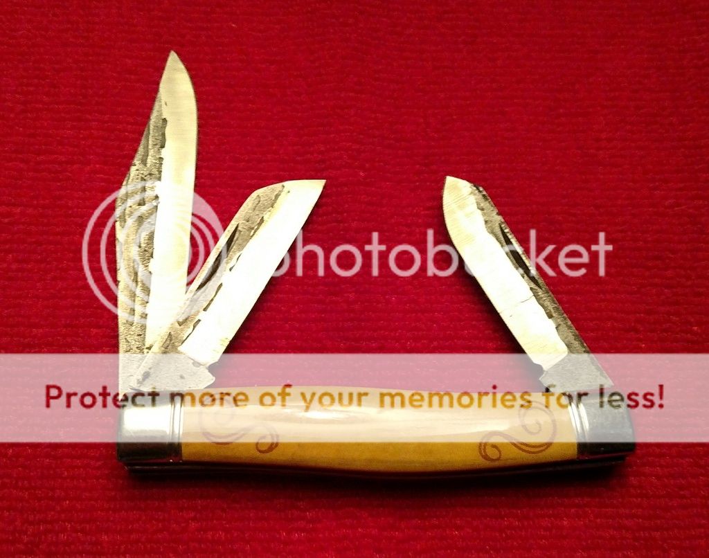 Thanks! Since I've had this classic it has been in the box. Knife is as it was from the factory. I have another one from that collection as well. It's the 200th Ann. of the U.S. Army & is done the same way. Hand Forged Blades