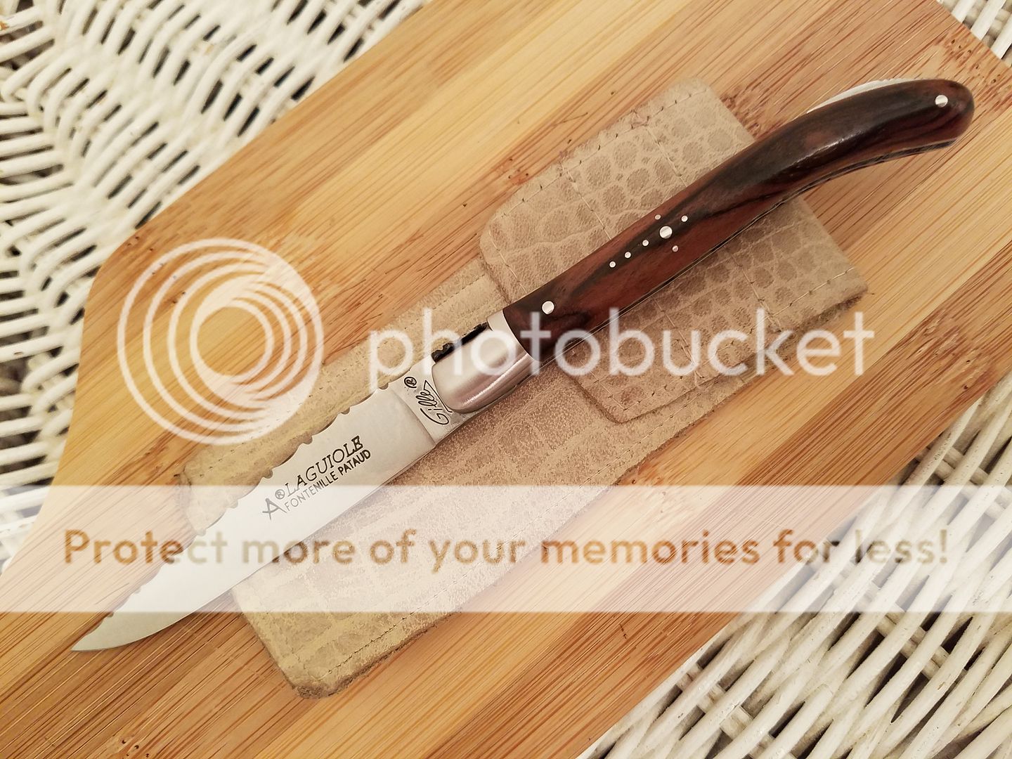 Just showed up yesterday. 9cm lock back Laguiole. This one has the extra file work and some real nice French Walnut, advertised as gunstock quality. Although the knife is 3.5", it seems small. It's very slim and goes almost unnoticed in the pocket. I think I'm going to like it!