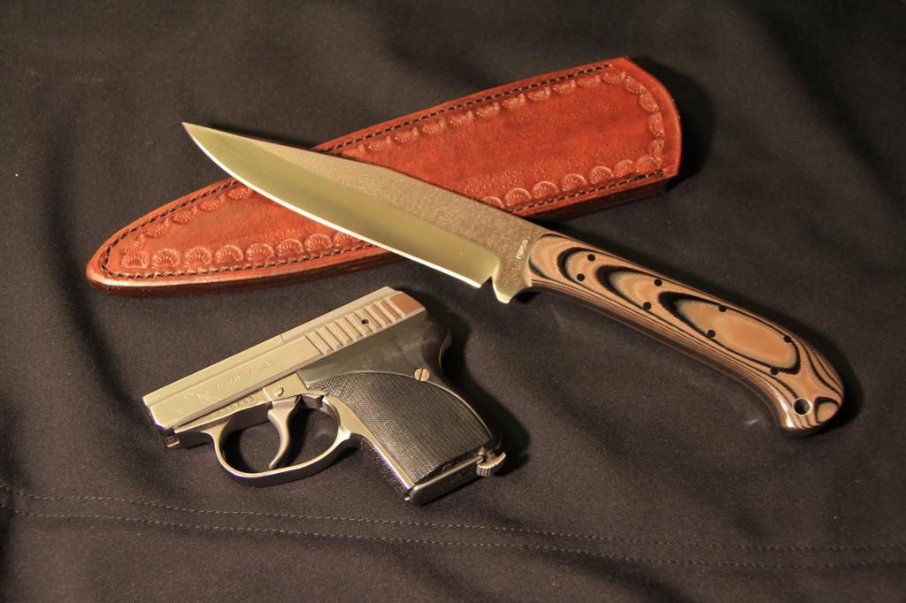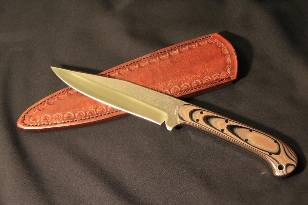 10.5" overall with a 5.5" blade. I liked the way it came out. I kept the flats the way the came from the mill and lightly cleaned them up. Handles are G10 with a bird's head style of grip.