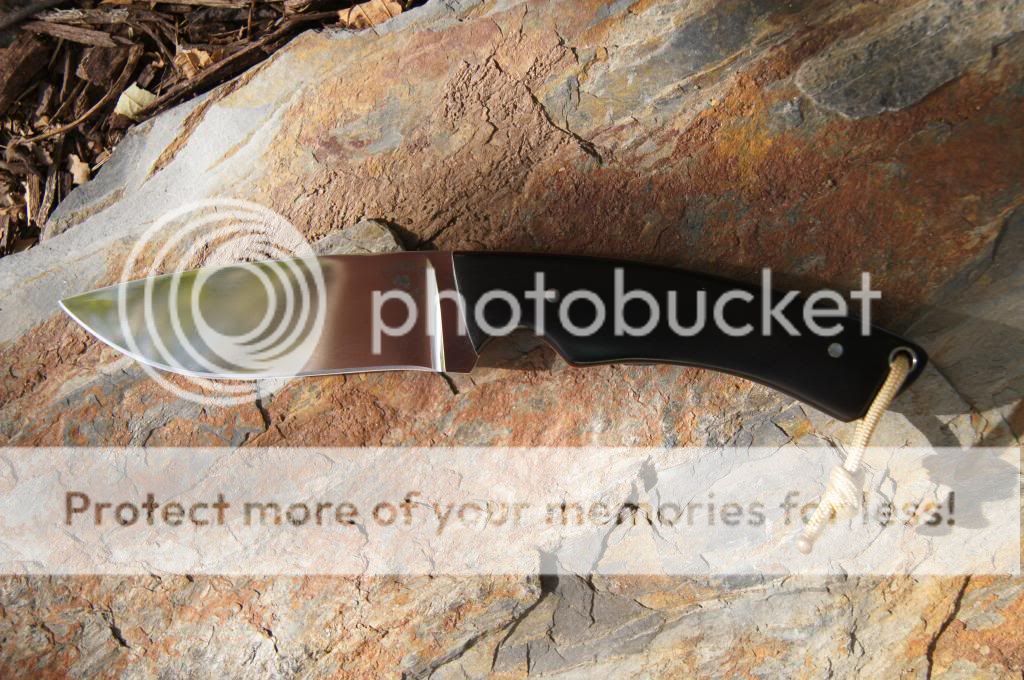 I have a never carried or used Recurve from Mike Morehouse. It has a flat grind (600 grit) made from D2, cryo tempered by Peters HT (58-59) and has a 3-7/8" cutting edge. Overall length is 8" and blade height is 1-1/8". Handle is black paper micarta with red fiber liner. Pins and tube are 416 stainless. Sheath is 7-8 oz. leather hand sewn with artificial sinew. Price is $SOLD shipped CONUS. Paypal or money order.