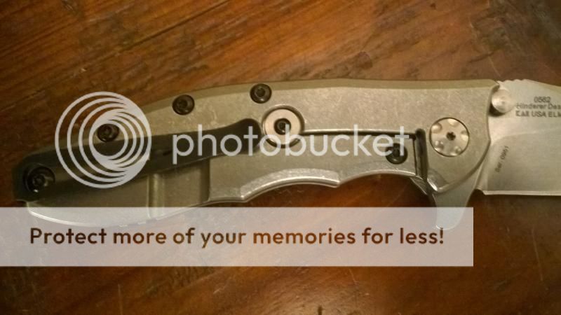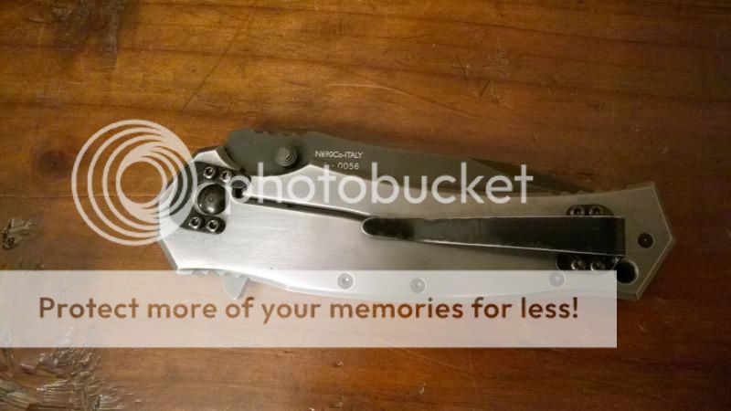 This is a user. Coating has worn in some places. The titanium side has been rubbed with a scotch-brite pad. It is a very large knife that carries small. Thin but solid. $100 shipped.