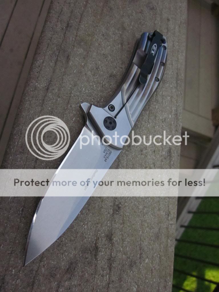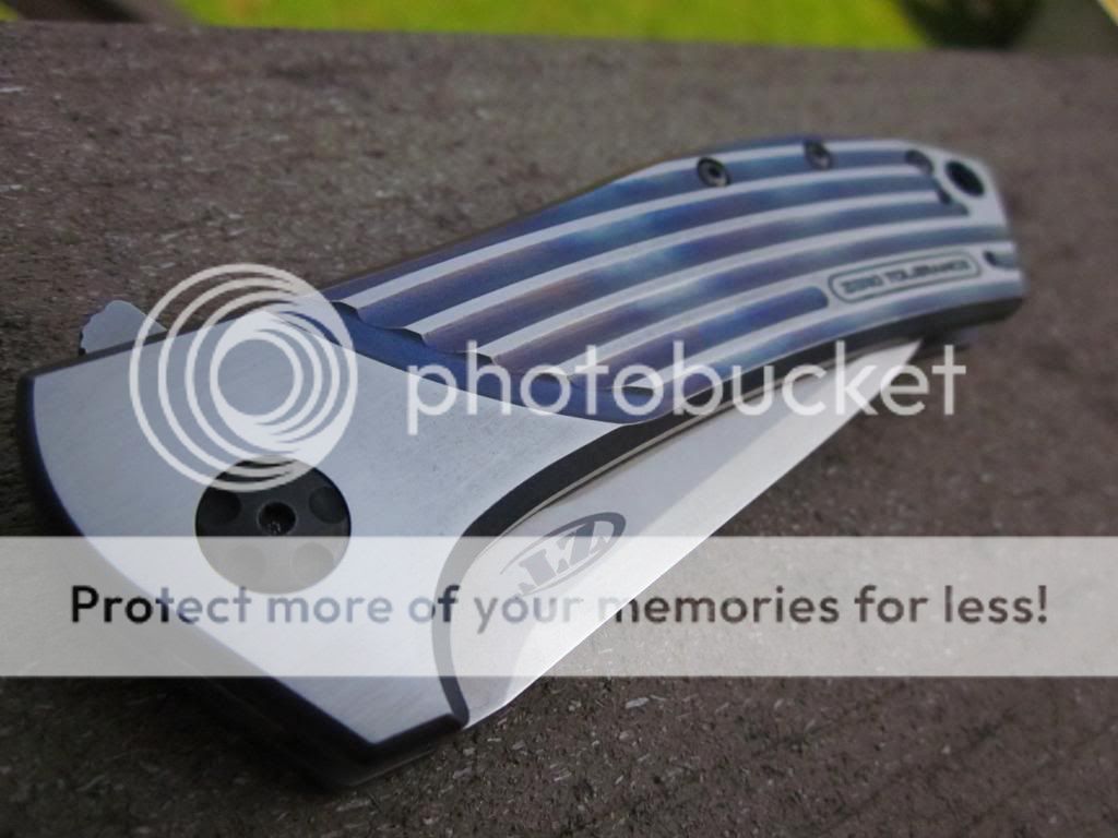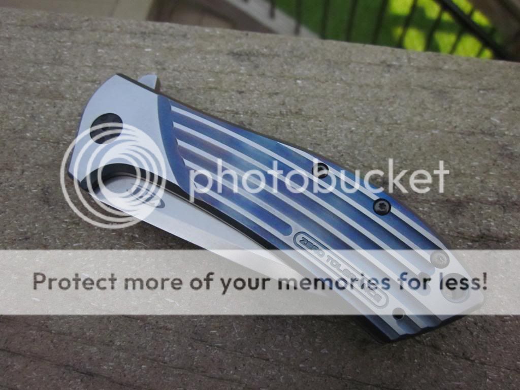 I heat colored the Titanium and sanded the flats as you can see in the pics. There is more color on the presentation side than the locking side. Opens buttery smooth thanks to the KVT. Lockup is solid in all directions and the blade is perfectly centered. The pocket clip is starting to show some wear here and there. I can leave it as is or sand the black coating off. I have the box.