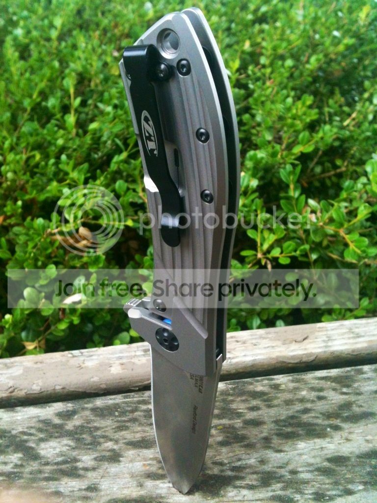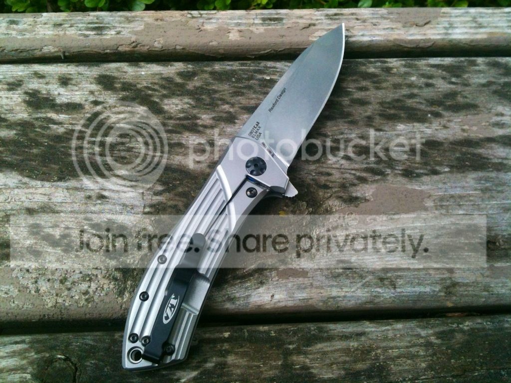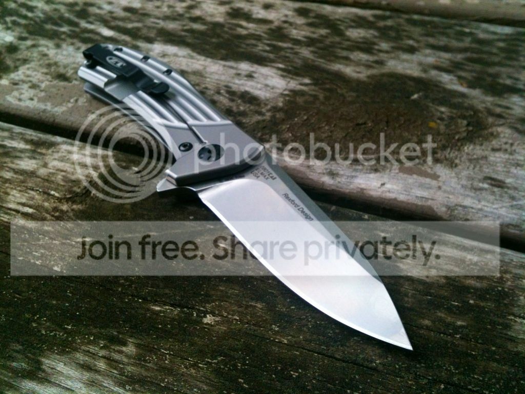 I have for trade my ZT 0801. Lock-up is 40% and rock solid. Blade centering is just a smudge to the left, but doesn't affect anything whatsoever. It flips very smoothly as well. There is no blade play in any direction, up, down, left or right. The pocketclip has a few hairline type wear marks on it that are very hard to see. I've sharpened it to 16 degrees per side on my Wicked Edge and this thing is sharp! It cleanly slices through phonebook paper and will shave hair. On the non-locking side handle at the top, there's 2 very small dings just from being carried a few times. There are also two very small "spots" where I was sharpening and just didn't get rid of the previous grits scratches. It doesn't affect anything and is the same sharpness in those spots as the rest of the blade. I have the box and paperwork.