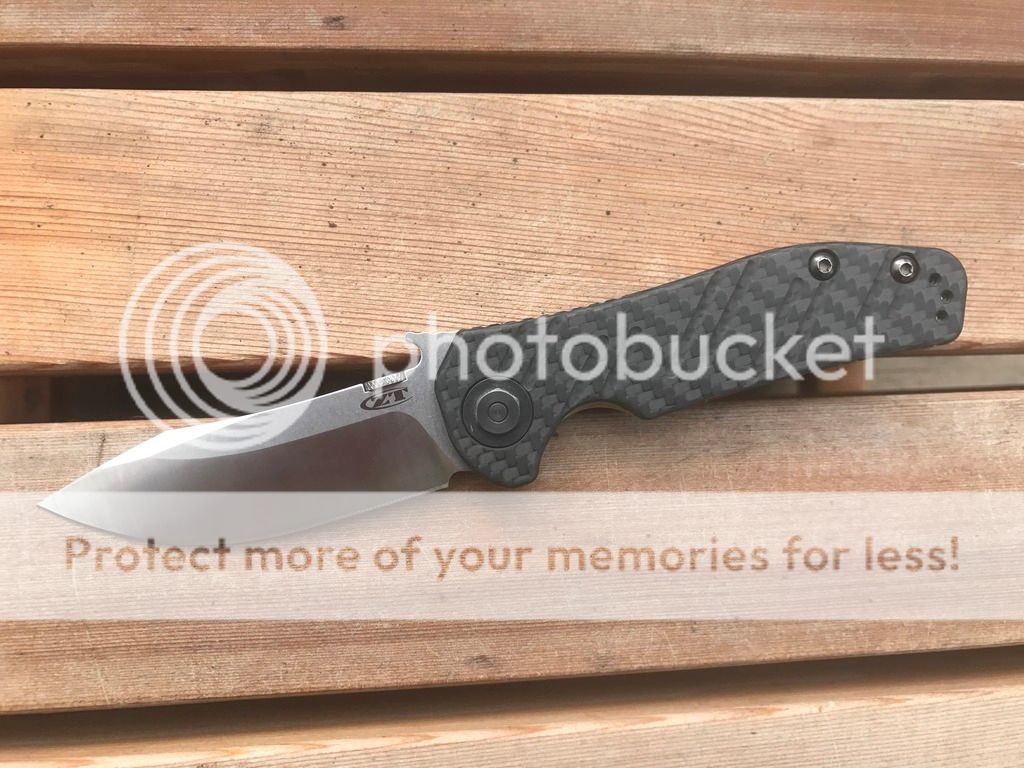 ZT0630CF has carbon fiber handles and M390 steel. This blade incorporates the Emerson Wave feature with the quickest one hand opening available. $SOLD