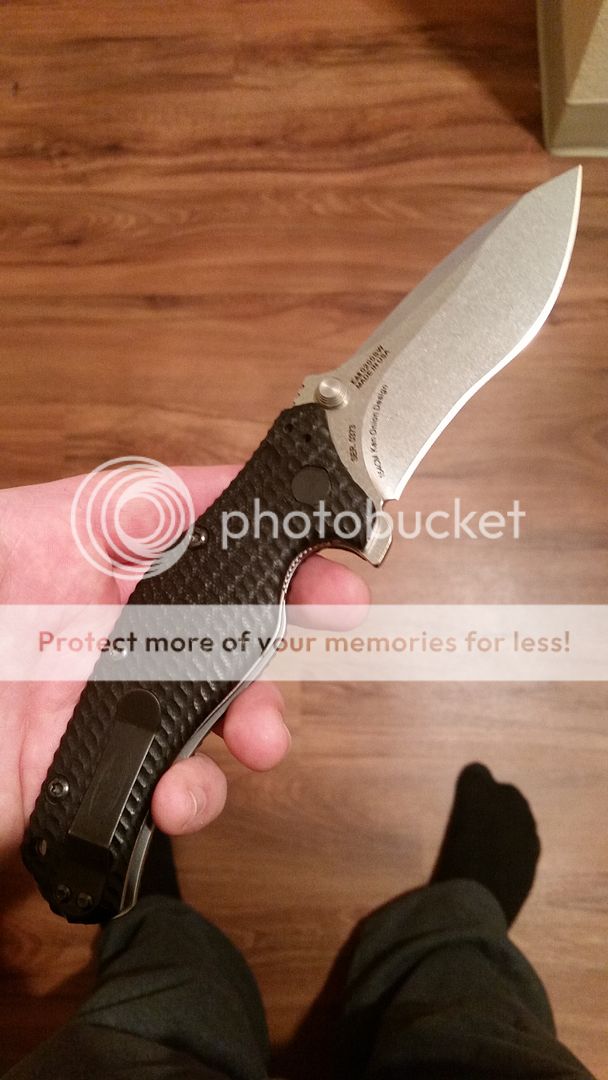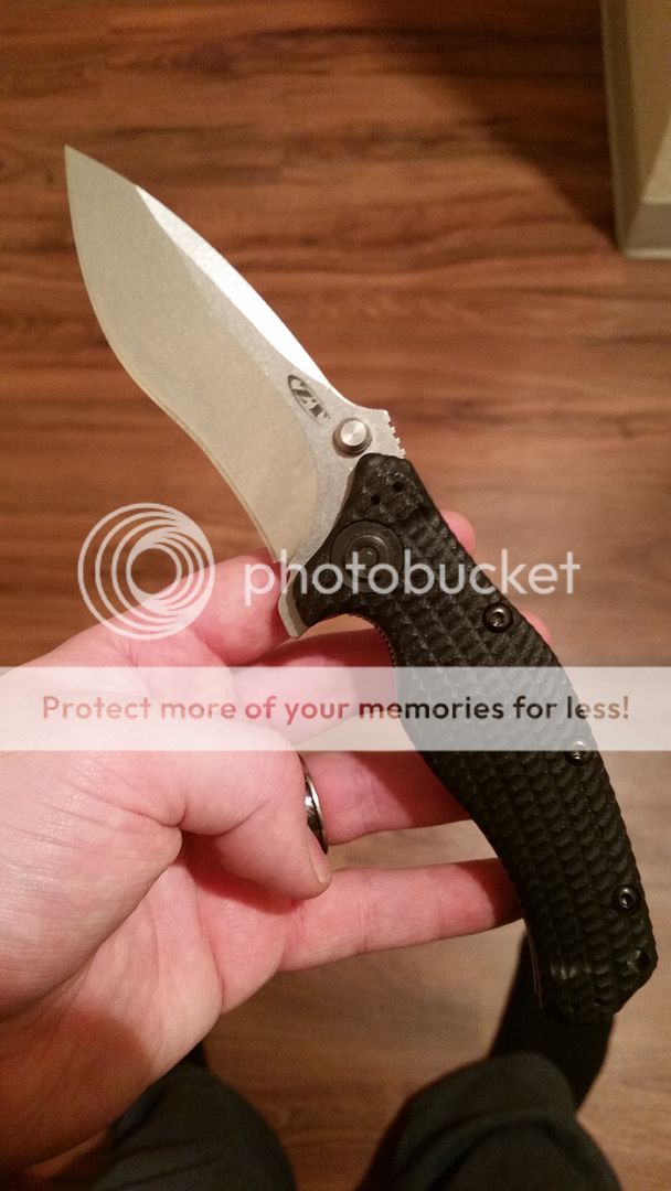 First is a ZT0200sw, I recieved this in trade and it's just a tad off from LNIB. I won't call it LNIB because I'm second owner and because I've taken it apart and re-lubed it. As well I've put a small amount of loctite on the pivot. The blade sits dead center and locks up solid with no play at about 50-60%. Flips fantastic and is extremelt smooth. No real issues with it, however one of the pocket clip screws didn't quite have a snug fit with the torx bit when I took the clip off for disassembling the knife so if you plan on messing with the clip you may want to get a replacement screw from ZT to be safe. Oh and the clip doesn't even have any scratches, this was taken apart and only carried around the house and cut paper. Blade has a factory edge and is sharp but not by any means a razor. This comes with original box as well.