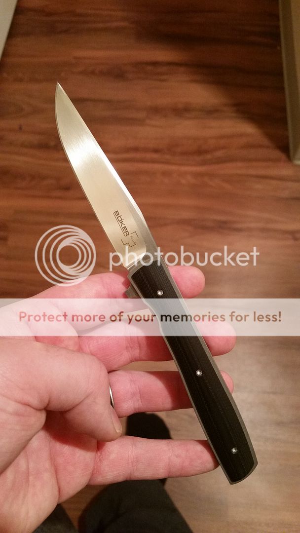 Next up is a boker urban trapper with the g10 scales over Ti liners. I am first owner, I bought this for office carry but it turns out it's just not my style and my cqc-12 remains king of at work EDC. However I'm extremely impressed with the knife. I'm usually hesitant of boker but they've stepped up their game, they did a great job with this one.