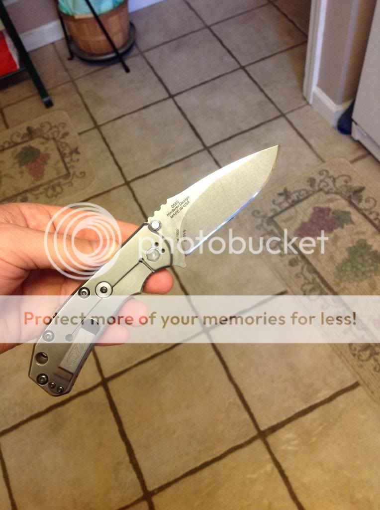 The ZT 0550 is a tank of a knife and has been used. It locks up rock solid with no play and is centered. I recently took it apart and applied CRK fluorinated grease to the washers and it is really smooth. The lock side has been scotchbrited which can be seen in the pictures below. The screws were left on when it was done and it rubbed the black coating off of the top of them but they are not stripped. ZT is supposed to be sending me screws for no charge and will do the same for whoever gets this knife although new screws are not necessary. It does come with the box. Im asking 130 shipped using Paypal gift or add 3.5%. The first Ill take it in this thread gets it. My email is joshdmoore13@yahoo.com Thanks