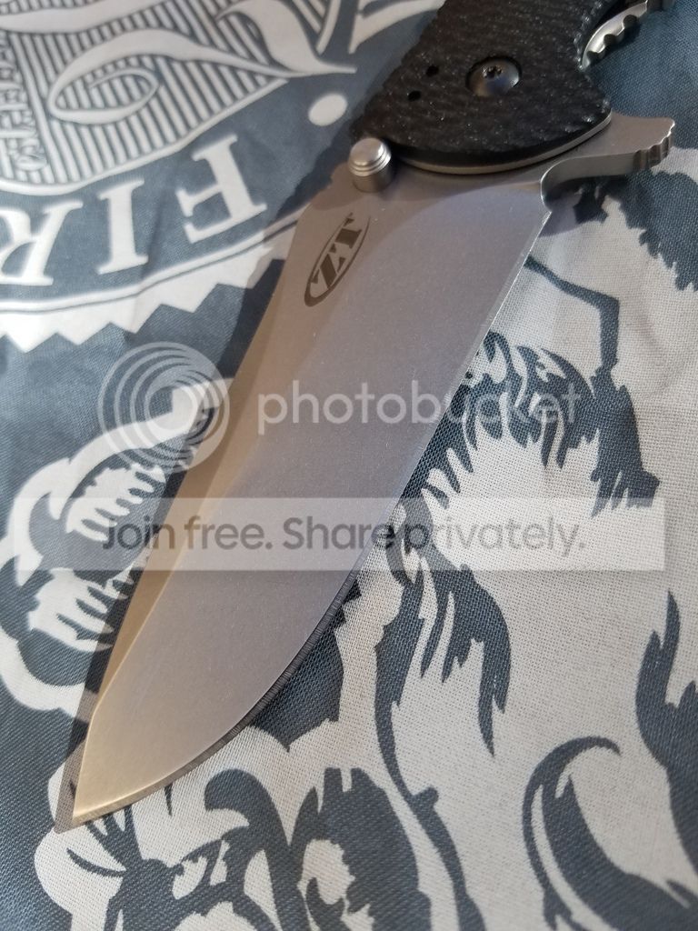 Excellent condition ZT 0560 Black. Received the knife in a trade however it appears to be well taken care of. I would say detente is medium, edge appears factory. Includes Box.