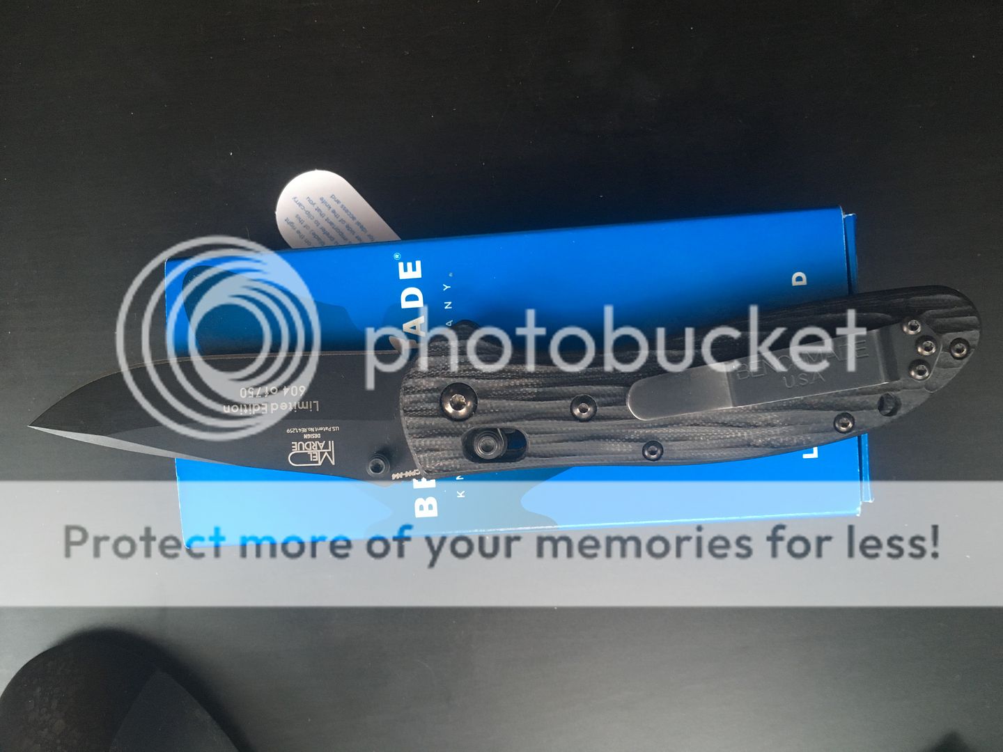 Benchmade 551BK-1301 2013 Shot show knife, with textured G10 and black coated m4 blade. Red spacers- beautiful NIB knife $250-->$wITHRAWN