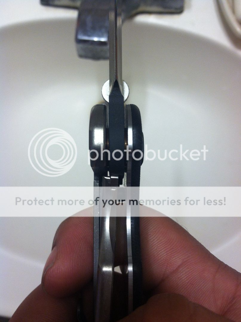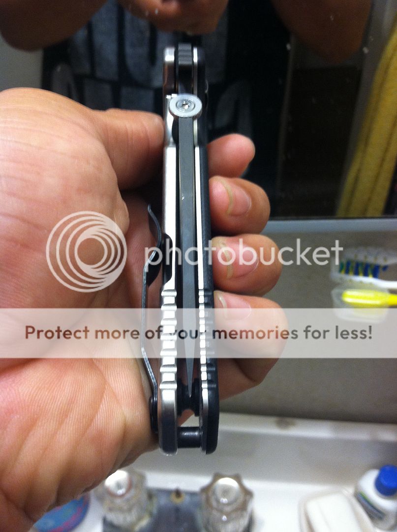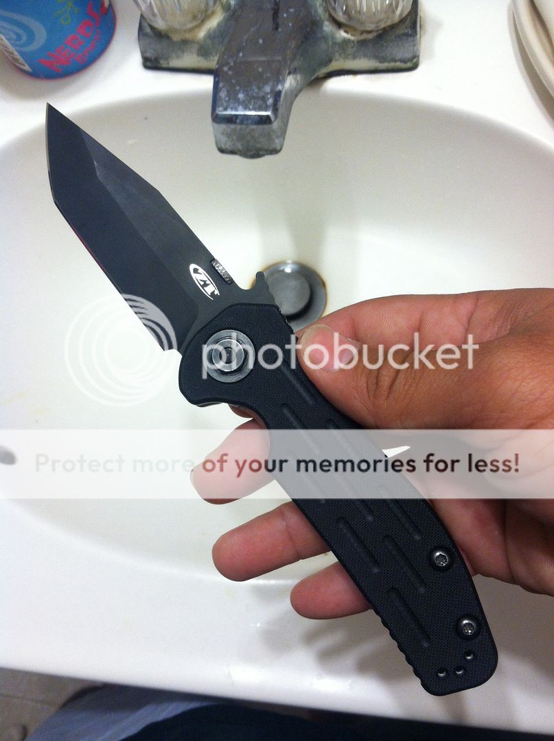 Let's get to the specifics: it's a heavy duty Ti framelock with a DLC tanto blade. Factory edge is extremely sharp and has been stropped by my buddy Kevin from Tupper Knife and Tool. The blade has marks from use and is off center, but there is no rubbing. I had some lock rock but I'm an impatient guy so I taped up the stop pin rather than send it in for warranty. Lockup is now extremely solid, but all you've gotta do is send it in to ZT and they'll take care of you.