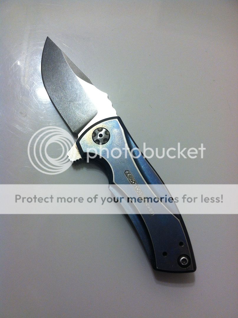 As I said, it has seen it's fair share of use and the blade has some scratches to prove it. The frame has also been heat anodized and adds a little color pop to the titanium. Again, this has seen plenty of pocket time so the color isn't perfect anymore. The lockup is solid, centering is perfect and the blade is nice and sharp! It comes with box. I'm looking to get $105 shipped to your door, PayPal only, in the great 50 states. First "I'll take it" gets it.