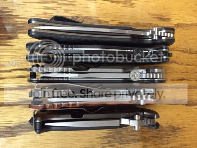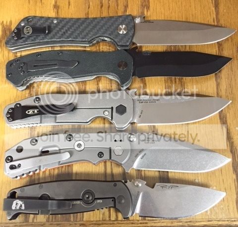 I have to say when I first saw this one I knew I would have to own one and after I opened the box it definitely does not disappoint. It is a beefy knife for sure, weighing in just over 6oz but it is a pleasure to carry and use. It fits my hand well in several grips (I wear large gloves). The fit/finish is excellent, with a perfectly centered blade, smooth opening from the wave or the disk, and a early solid lockup. Most factory ZT edges I have received have been shaving sharp when I got them and this one would easily pop hairs out of the box. So far my favorite of the ZT line has been the 550 but this one may just bump it from the top. I put it next to a few of my others that I have been carrying recently for some pics. Size wise it fits just in between the 15 and the 550 but the difference between both is minimal. Considering the weight it isnt as thick as either though as seen in the pics.