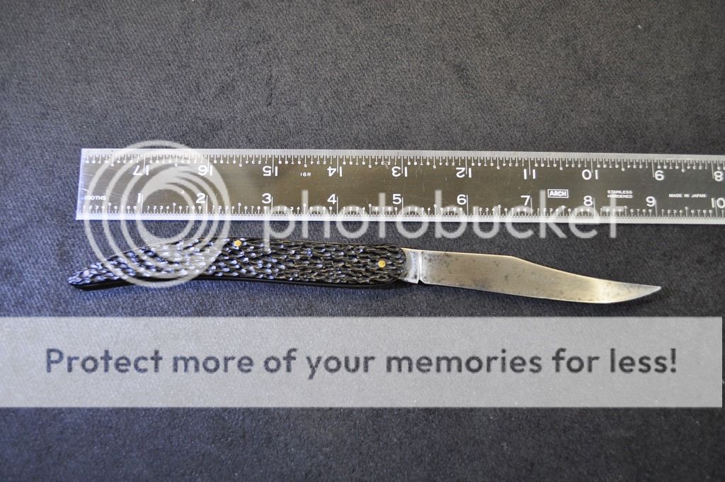 Old Imperial (PROV. R. I.) fish knife folder, 3.85" blade, 4.9" closed, 8.85" OAL opened, Good snap in closing. Average condition, with some separation on the end (see picture). It would be a nice user knife. $40.