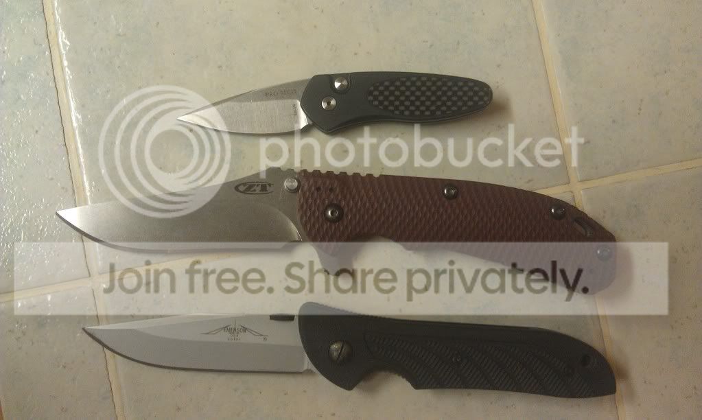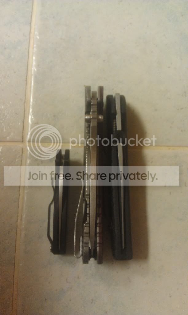 Lastly, I have a unique ZT 561. All the mods were well done by the previous owner. Strong lock up but with a bit of up and down play. Enough to feel with your hands a hear a little click when you shake the knife but it doesn't affect the lock up at all. It has never disengaged. KAI might take care of it but I have never inquired. There is a couple of scuffs on the corners of the G10 as well as a slight ding on the spine a couple of mm from the tip. The tip is also slightly nipped. It is still shaving sharp on most of the blade, especially the belly, and has a decent mirror edge left.